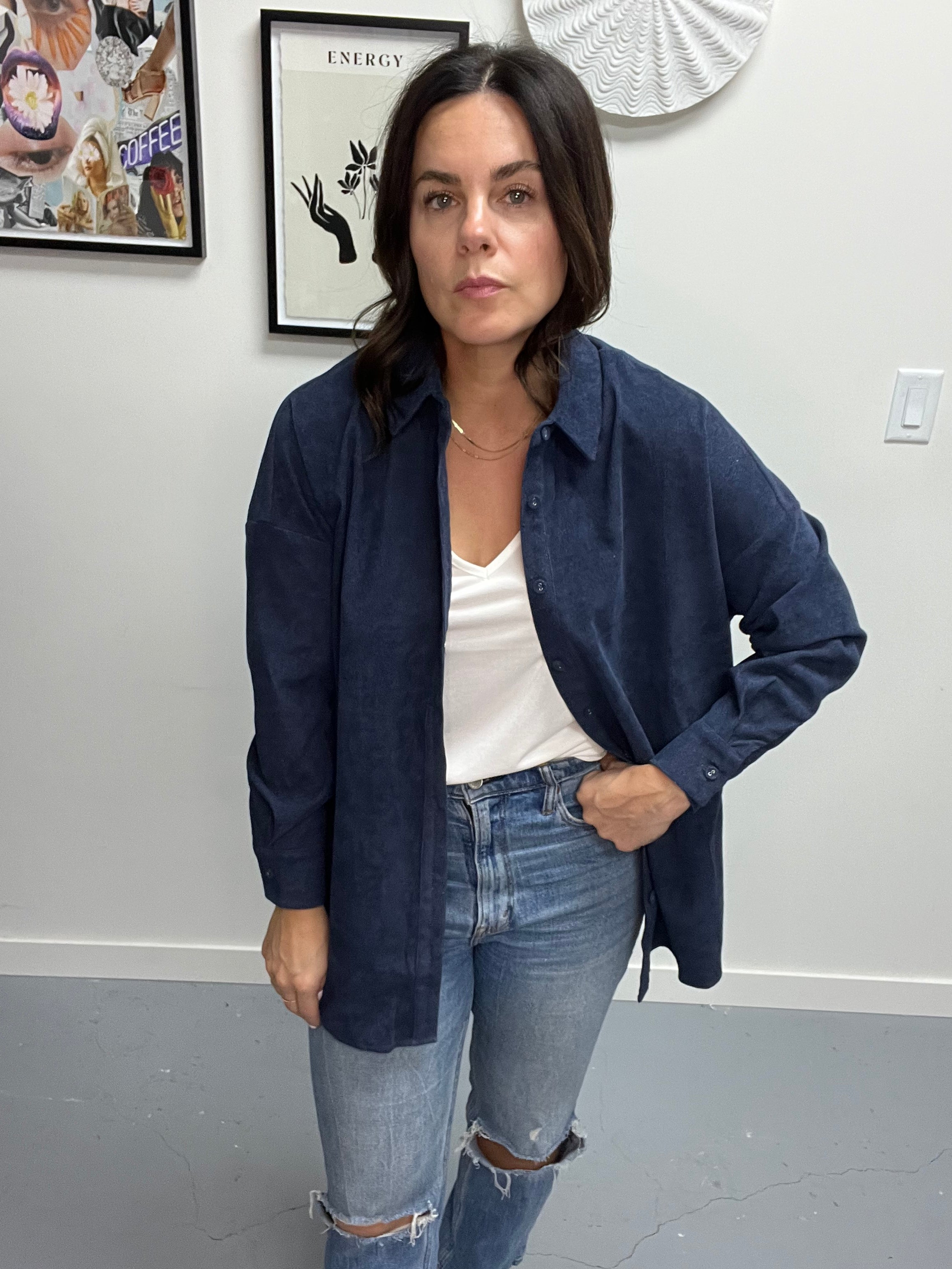 Perfect for fall this cord button down can be worn as a shacket with tee or as a button down shirt on its own.