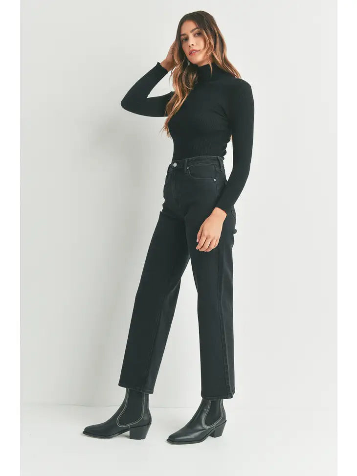 11" rise, 29.5" inseam, 9.5'' opening Washed black - high rise full length straight