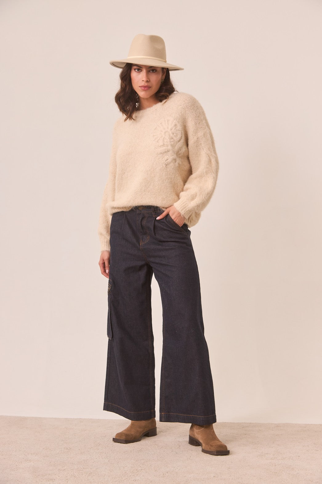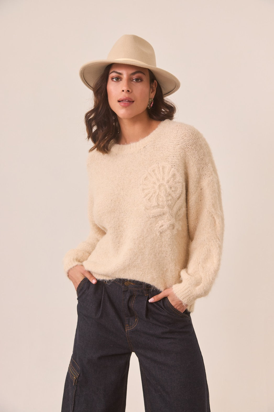 JERSEY WITH MATCHING FLOWER EMBROIDERY