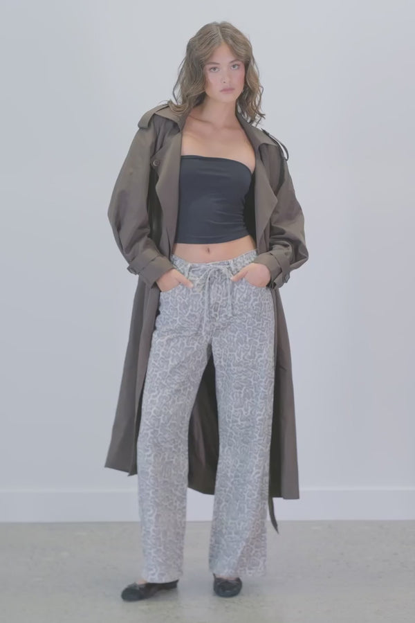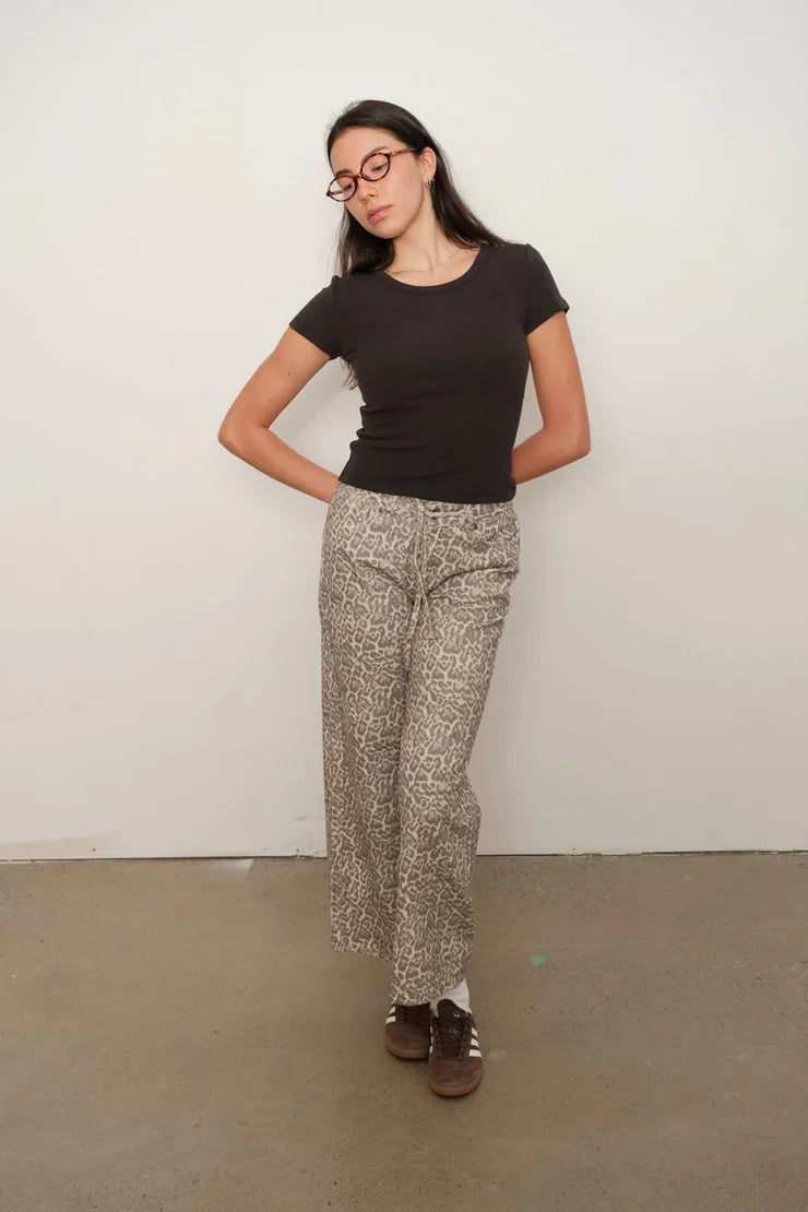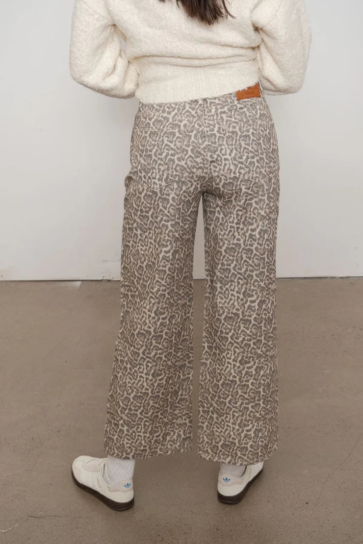Bold yet effortlessly chic, these wide-leg pants feature a soft, neutral-toned leopard print and a flattering wide-leg silhouette. Crafted with comfort in mind, they likely include an elastic or pull-on waistband and practical side pockets. Designed for both drama and ease, they flow beautifully—ideal for styling with snug tops or cropped knits. These pants elevate everyday wear with a subtle statement, perfect for anyone looking to blend comfort with eye-catching style.