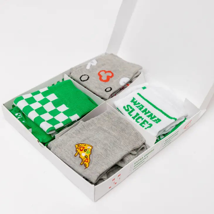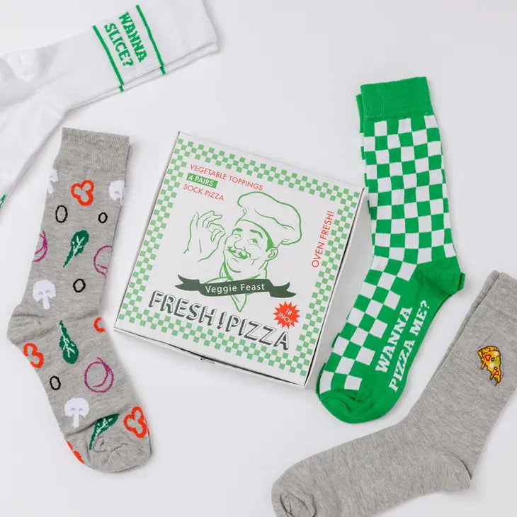 We all know a pizza fanatic and the Veggie Pizza Sock Set is the perfect gift for them! This unique set features four pairs of socks each with a different pizza inspired graphic. These amazing socks are stretchy, durable and fun!